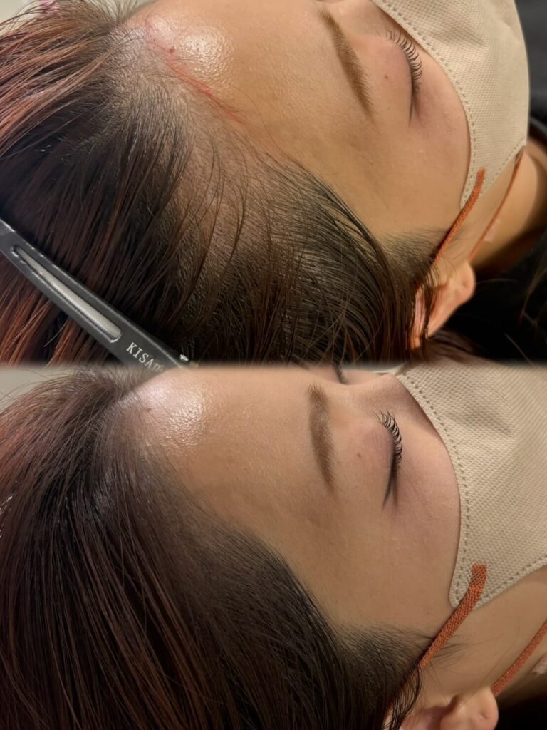 ポニーテールにすると、生え際の透け感が気になって思いきり髪型を楽しめませんでした。施術後は生え際が自然に整って、安心してアップスタイルができるようになりました。