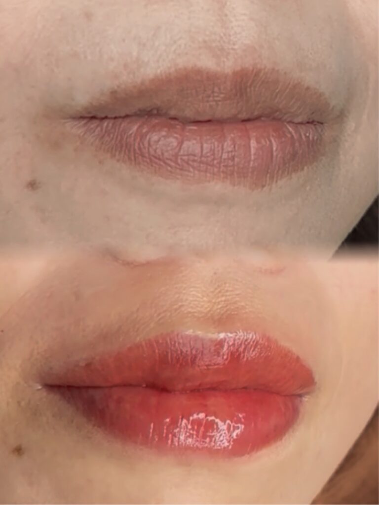 A. 衛生面と定着の安定のため、施術後1週間は口紅や色付きグロスの使用は控えてください。 その後は色素が定着した状態に合わせてメイクを楽しんでいただけます。